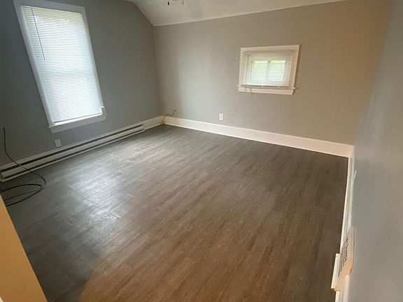 This spacious apartment has wood flooring and fresh paint throughout! With 1 large bedroom and an extra room, there is plenty of storage space. Washer and dryer hookups are located in the front entrance (private), apartment is upstairs. Plenty of off-street parking available and large grass area if you have a pet.