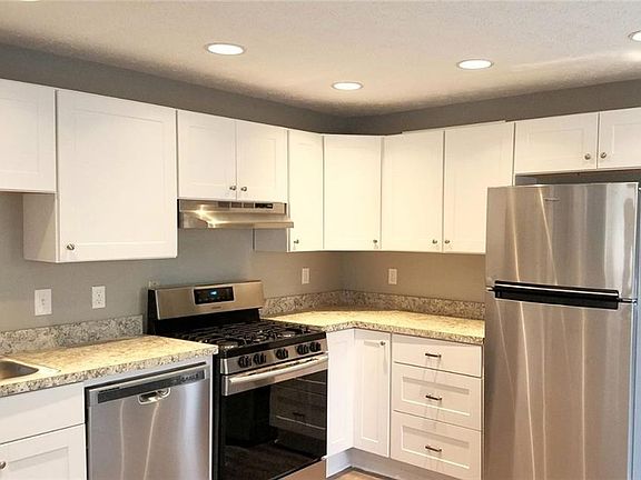 Welcome home to this charming two bedroom home. This home is a total renovation with new everything! New Pella windows, roof, siding, all mechanicals, drywall and insulation. Super low utilities. Ready to move in and enjoy cozy living in this no-maintenance one floor ranch home with one full bathroom. Enjoy the central air conditioning, gas furnace and new stainless steel appliances, along with new vinyl flooring. Large eat-in kitchen with tons of storage. Barn could be converted to a garage or workshop. MUST SEE! in a great location. Close to shopping, dining and highways. No maintenance on this vinyl sided ranch home with plenty of parking.