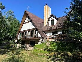 Unique home for sure! This chalet style home offers a Tudor exterior. Setting a 70 acre private paradise. The home offer 3 bedroom and 4 bathrooms along with an extended loft area over looking the living room. Solid surface counter tops in a nicely laid out kitchen that over looks the living room. You will enjoy fabulous views from each window and also enjoy the coziness of the wood burning fireplace on the main level. The lower level doubles as extra living space and can have multiple uses. There is an old air strip on the property as well as 2 older buildings and an outhouse!