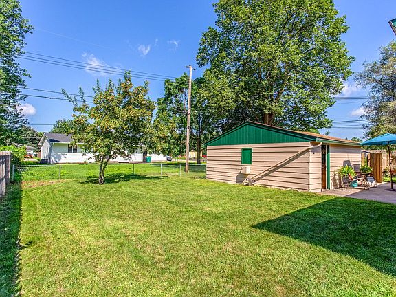 Welcome to this charming one-story home, perfectly blending comfort, space, and potential. Situated on a desirable corner lot, the property boasts an L-shaped wrap-around driveway leading to the garage, along with a fenced backyard featuring a patio and multiple open green spaces—ideal for safe play, gardening, or private outdoor gatherings. Exterior updates include a new roof installed in 2021! Step inside through the back door to a welcoming kitchen with abundant cabinet and counter space, a sink with backyard views, and a dining area framed by dual windows. The main level offers three comfortable bedrooms, each showcasing original hardwood flooring and bright windows that fill the rooms with natural light. A full bathroom, centrally located near the bedrooms, features a jetted tub/shower combo, a spacious vanity, and timeless tile flooring. The finished lower level is a true bonus, offering an expansive family room with warm wood paneling, built-in bench seating, and ample space for recreation or hobbies. A lower-level kitchenette with range, sink, generous cabinet storage, and a pass-through window makes entertaining a breeze. An additional lower-level bedroom provides flexibility for guests, a home office, or creative space, while the large laundry room offers added storage for convenience. Solid construction and vintage character make this home a wonderful canvas—whether you wish to preserve its retro charm or renovate to suit a modern style. Located in a sought-after neighborhood with easy access to parks, schools, and shopping, this property offers endless possibilities to make it your own!