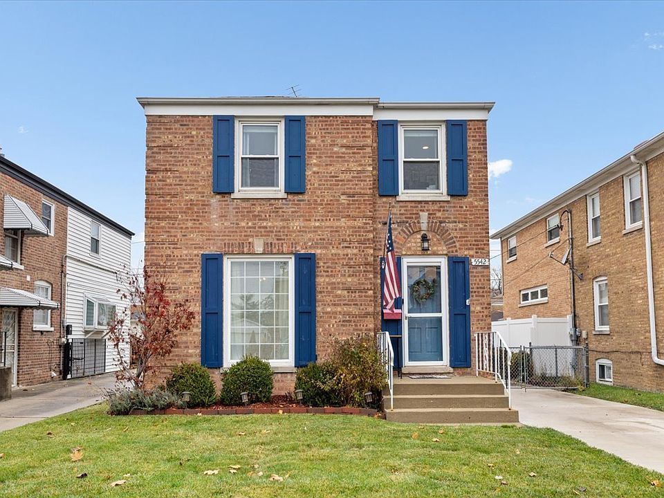 Welcome to this elegantly appointed brick Georgian home in the heart of Oriole Park, Chicago. This residence offers a harmonious blend of classic charm and modern updates, setting a high standard for comfortable living. As you enter, you're greeted by gleaming hardwood floors that seamlessly flow throughout the sun-drenched main level. The spacious living and dining area invites gatherings, leading effortlessly into the kitchen, which was recently renovated with stainless steel appliances that cater to both the everyday chef and culinary enthusiast. Ascend to the second floor, where you'll find three generously sized bedrooms, each providing a peaceful retreat. The recently renovated bathroom exudes luxury, showcasing a modern design complete with a soothing soaking tub. The home's practicality is matched by its thoughtful conveniences, including central air conditioning, gas heat, and an efficient forced air system. The full basement offers a blank canvas, ready for your personal touch, while the modern washer and dryer, installed in 2020, add a layer of ease to daily life. Step outside to discover an expansive backyard, perfect for outdoor enjoyment, alongside a charming patio and common outdoor space. The oversized two-car garage stands as a testament to the home's commitment to both style and function. This property, with its impeccable curb appeal, awaits a new owner to create lasting memories.