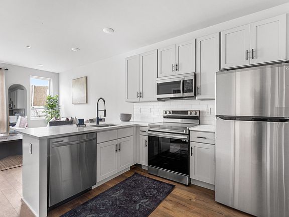 Each apartment features hardwood flooring, top-of-the-line stainless steel appliances, and a full-sized in-unit washer and dryer. The stunning white quartz countertops complement the ample cabinet space, perfect for anyone who loves to cook like a pro.