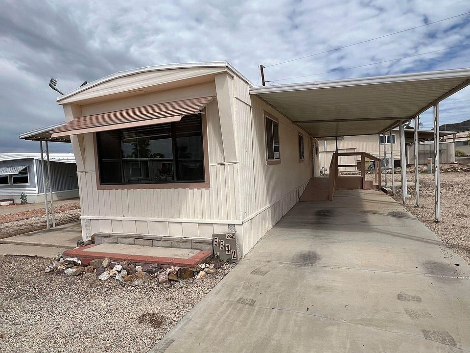 This is an amazing 1BR/1BA Manufactured home in a 55+. The home has a fridge and a stove in the kitchen and a full sized washer and dryer for your use. The community offers: par 3 golf course, shuffle board, community library, community pool and spa, community sauna, and much much more. The mountain views from your front porch are second to none