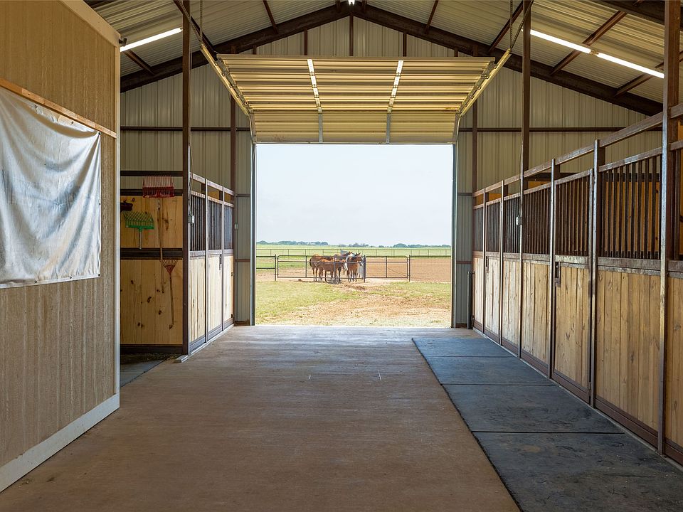 Welcome to 5543 Gray Rd in Nocona, TX – a turnkey equestrian property nestled on 12 fully fenced acres. This beautifully built 2 bed, 2 bath 1,245 sq ft barndominium offers country living at its finest with a seamless blend of comfort and functionality. The home features stained concrete floors, an open-concept layout, and large windows showcasing scenic pasture views. Enjoy relaxing by the fireplace in the cozy living space or unwind under the covered porch while taking in wide-open Texas skies. Connected to the home is a 60’x40’ top-tier horse facility designed with every detail in mind. The barn includes two oversized foaling stalls and four extra-tall, oversized stalls ideal for stallions—each equipped with floor drains for easy cleaning. A dedicated wash bay, tack room, and heated concrete floors throughout make year-round care simple and efficient. Outside, the 12-acre tract is completely fenced, offering plenty of room for riding, grazing, and training. The 270’x170’ arena is ready for roping, barrel racing, or other equestrian activities, making this property a dream for horse owners or anyone looking for a peaceful rural retreat. Whether you're a serious equestrian, weekend rider, or simply craving wide open space and stunning sunsets, this property checks all the boxes. Don’t miss your chance to own this well-maintained, ready-to-go slice of country heaven in Montague County.