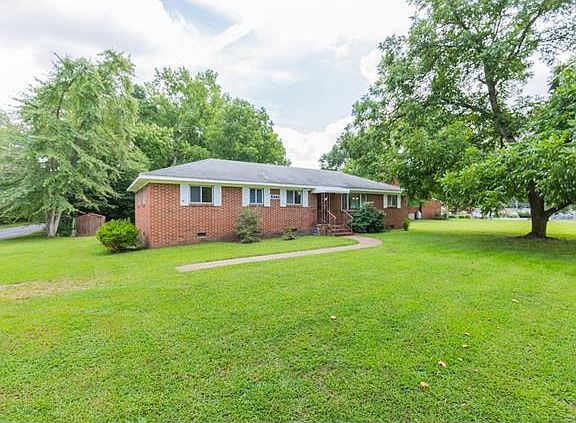 CHARMING 4 BEDROOM BRICK RANCHER! This well maintained home is nestled on almost an acre corner lot. Living Room has beautiful hardwood floors, ceiling fan and oversize windows. Spacious Kitchen has ample cabinet space, laminate counter tops, built in appliances, and overhead lighting. Off the kitchen is the open dining area with rustic wood burning fireplace and ceiling fan; creating the perfect entertaining space! Laundry room is located off kitchen with washer/dryer hook ups, shelving and easy access to the rear of the home. Master Bedroom has hardwood floors, closet space and ceiling fan. Three additional bedrooms are all a great size with closet space and hardwood floors. Two full bathrooms all have tub/shower combination, vanity, and linoleum flooring. Back of the home features a spacious backyard with detached storage shed with electricity. Conveniently located to everything this home is a true MUST SEE! Schedule your showing today!