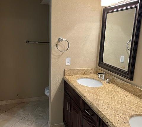 Fully upgraded bathrooms including new granite, travertine tile floors, sinks, faucets, and mirrors.