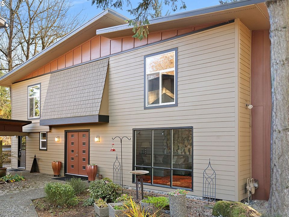 There’s a certain magic you feel the moment you cross the threshold of this one-of-a-kind home that is practical in all the right ways, yet full of undeniable character. For those who seek more joy in the everyday, it’s a home you simply have to experience in person. Natural light fills the space from sunrise to sunset, pouring through floor-to-ceiling windows and framing treetops, sky, and nature from nearly every room. Brazilian Acapu floors add warmth throughout, and the remodeled kitchen blends clean design with practical function. Step outside to a private, south-facing outdoor space designed for ease and enjoyment, whether you’re gardening, lounging, entertaining or simply watching the sky change colors. Upstairs, the primary suite feels like a true retreat. Spacious and calm, it’s anchored by a gas fireplace, with a walk-in closet and ensuite bathroom with walk-in shower that adds everyday comfort and ease. Just off the main living areas, the oversized laundry room plays multiple roles as a pantry, extra prep zone, and mudroom delivering an efficient, hard-working space that keeps daily life running smoothly. Whether you’re into hands-on projects or outdoor adventures, the oversized garage has the space to match your lifestyle. Above it, the expansive bonus room is complete with a wet bar and pool table that adapts effortlessly for entertaining, unwinding, creating, or simply enjoying time on your own terms. Behind the scenes, updated systems like siding, roof, plumbing, and electrical with LED lighting throughout keep life easy and low-stress so you can simply move in and enjoy. All of this is tucked into Southwest Portland’s sought-after Ash Creek neighborhood, known for its peaceful streets, friendly neighbors, and easy access to trails, parks, shops, and daily conveniences. You will love living here! [Home Energy Score = 1. HES Report at https://rpt.greenbuildingregistry.com/hes/OR10242792]
