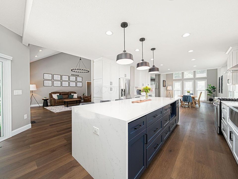 COFFMAN HIGH SCHOOL! Tucked away on a peaceful, tree-lined street in the heart of Dublin, this home offers the best of both worlds—serenity when you want it, and convenience when you need it. With 5 bedrooms, 4 1/2 baths, and 4,001 square feet of living space, this house offers versatile spaces to fit every stage of life. Step inside to a completely remodeled, wide open first floor, where luxury vinyl plank flooring flows through the dining room and into a show-stopping chef's kitchen, perfect for casual chats during dinner prep and the go-to spot when entertaining. The kitchen opens to a two-story family room bathed in natural light from a wall of windows. The first-floor owner's retreat features a double-sided fireplace connecting bedroom and bath, plus private patio access. Upstairs, 4 bedrooms, one with its own en suite, offer generous closets and plenty of flexibility. The finished basement adds a second living area, a fourth full bath, a workout room, and abundant storage. Outside, the brand new gazebo and spacious patio with built-in fire pit overlook a wooded common area—the perfect spot for morning coffee or evening drinks. Just half a mile from the Dublin north pool and National Blue Ribbon School Wyandotte Elementary, and minutes from shopping and I-270, this is the perfect home for anyone wanting more room to live, work, and relax. If that's you, schedule a showing today!