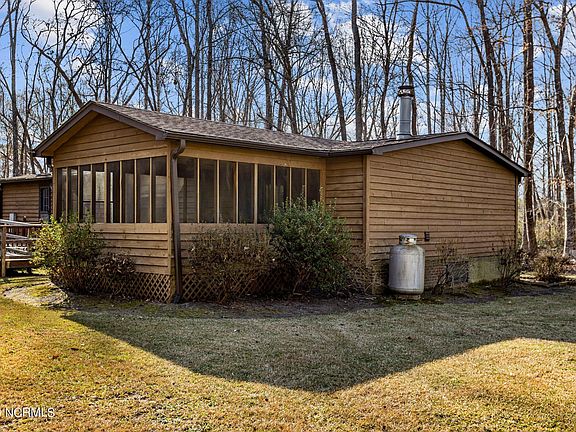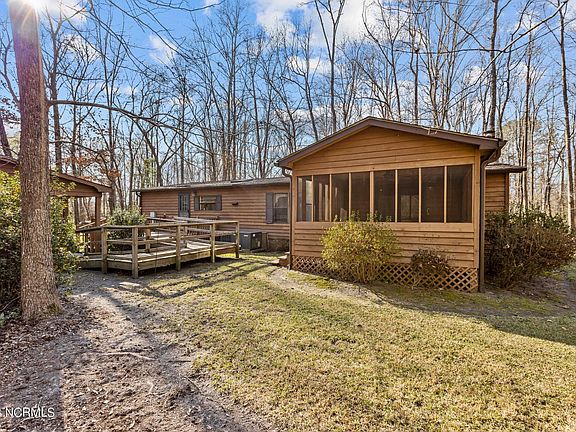 Beautiful lot surrounds this home on 6.88 acres. Looking for large lot with home, detached carport, privacy and convenient location? This is it! This 3 bedroom 2 bath home has approximately 1600 square feet and includes a spacious kitchen with lots of cabinets, family room with fireplace, and living room. Master suite has a bath with huge updated shower. Family room exits to a wonderful spacious screened porch. Home to be sold in as is condition. Mobile home at the front of the lot will be moved to a separate location. There is a separate septic tank for that home.