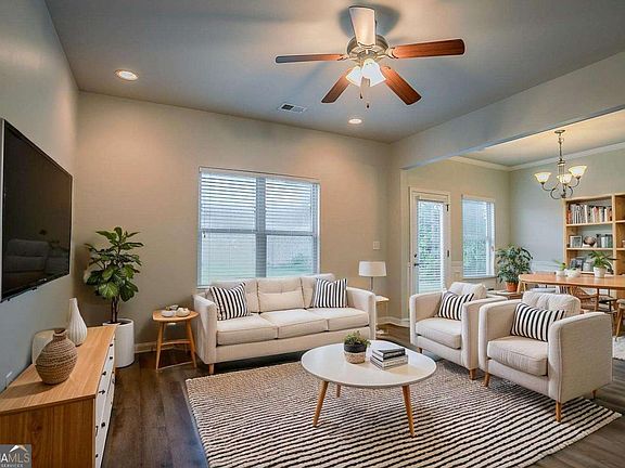 Welcome to this spacious 3-bedroom, 2.5-bathroom home in the desirable Union Pointe community. Built in 2018, this traditional two-story residence offers over 2,000 square feet of living space with a bright and open layout. The main level features a comfortable living area, dining space, and a modern kitchen equipped with stainless steel appliances. Upstairs, you'll find three generously sized bedrooms, including a primary suite with a private bath. Additional highlights include hardwood and carpeted flooring, a two-car garage, and a relaxing outdoor patio. With easy access to nearby conveniences, this home combines comfort and practicality in a sought-after Fulton County location. One or more photos have been virtually staged.