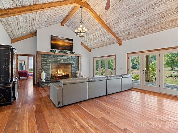 Welcome home to this unique custom-built home, with pond, surrounded by 22+ acres of privacy. Bright & airy home offers loads of sunlight with modern/western touches with an inviting open great room, wood cathedral ceiling & stone fireplace that flows easily into the kitchen. Gorgeous 100 yr old black walnut wide plank wood floors throughout the main living area, 36” solid wood doors, 10’ ceilings, open kitchen w/granite, additional prep sink & SS appliances. Each bedroom has a walk-in/large closet, full bathrooms, & door leading out onto the patio. Spacious primary bedroom, 2 walk-in closets & large walk-in shower w/steam option. Un-finished bonus over 3-car garage w/plumbing, wiring & new HVAC are ready for use. Plenty of pasture/fencing for your horses or small livestock. Home is pre-wired for a generator and optional wood burner. Additional acreage has large insulated metal barn, concrete floors, 2 large roll doors, lean-to, separate entrance w/pond, wired 220.