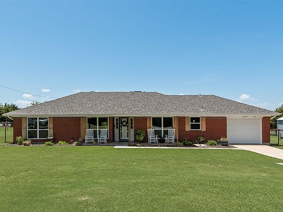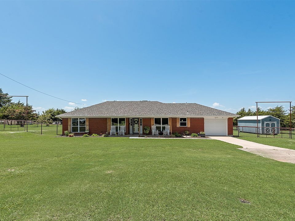 Motivated Sellers! Offering $5000 in buyers closing cost on this beautiful property. Discover your perfect rural retreat with this beautiful 1973 ranch style home nestled on 5.98 acres. The property is a picturesque farm and ranch lovers dream with a 48 x 60 barn equipped with four 12 x 12 horse stalls with a 16 ft run and 3 pens for small animals complete with water and a wash rack. Additionally there is a 12 x 12 tack room for all your equestrian equipment. Equestrian enthusiasts will appreciate the large roping arena with lighting ensuring you can enjoy your rides day and night with plenty of pasture surrounding as well for riding, playing and star gazing. An RV hookup adds convenience for the adventurous getaways you plan to take. The entire property is fully pipe fenced with several conveniently placed gates allowing you to easily move large machinery or your beloved animals. And what dream property is complete without your own pond. The residence features 3 comfortable bedrooms and 2 full baths with stylish ceramic wood-look flooring throughout the main living space. The master bathroom has been updated with a large modern stylish walk in shower and a sleek granite countertop. A wood burning fireplace serves as a captivating focal point in the living room perfect for cold winter nights spent with family and friends. Spend time relaxing on your covered back patio or unwind in the pool on hot summer days that features a deck for lounging. Additionally the property includes 3 storage shed all equipped with electricity and ample space for tools and equipment. One of the shed features a desk and AC unit and could function as an office space. And yet another shed is completely finished with sheet rock walls, and an AC unit as well that could serve as a playhouse, she shed or whatever need fits into your busy life. Peace of mind is everything and this house offers just that with many updates including the roof, windows and HVAC.