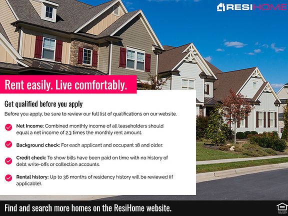 TOUR & APPLY NOW! Visit our ResiHome website to search for homes, schedule a self-tour, review qualifications, and apply online. 12-month lease term or greater required.