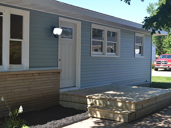 Newly remodeled ranch with new Roof, and siding, new kitchen with butcher block counters, new bath with tiled surround on the tub, all new flooring and paint. It is ready for your personal touches and to just move in. Three bedrooms and one nice size bath, with a 2 car attached garage and a double lot for kids to play in. It backs up to the school property. Basement has a toilet and is stubbed for a sink, ready to finish.