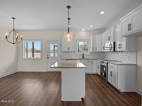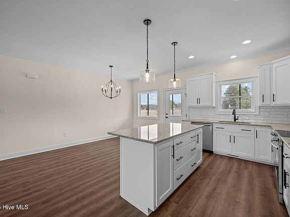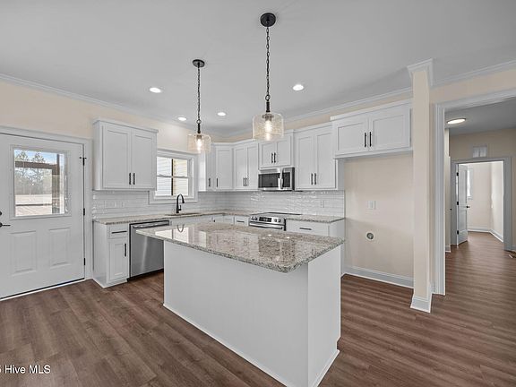 Custom built ranch plan on an expansive wooded home site! Large rocking chair front porch. Upgraded LVP flooring throughout main living areas with designer lighting, custom trim and thoughtful finishes throughout! Kitchen: offers granite countertops, custom painted cabinetry, large center island with barstool seating, stainless steel appliance package & spacious walk-in pantry! Informal dining area with French door to the rear screened porch! Private owner's suite features plush carpeted flooring & owner's bath with angled dual vanity with granite top, oversized dual shower and huge walk-in closet with direct access to the laundry room! Family room: Open concept perfect for entertaining! Spacious secondary bedrooms & oversized 2-car garage!