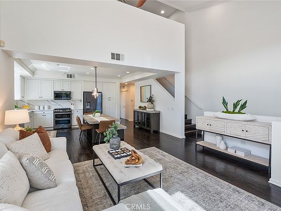 The main living area is bathed in natural light, showcasing soaring two-story ceilings and an open-concept design that flows seamlessly from the living room, dining area to the upgraded kitchen with beautiful new quartz countertops all leading out your private balcony, perfect for grilling, morning coffee, or winding down at the end of the day.