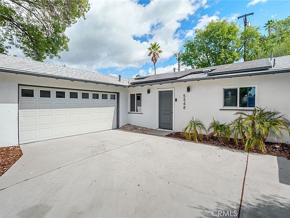 Fully remodeled 4-bed, 2-bath home in sought-after Woodland Hills. This modern retreat features high ceilings, recessed lighting and new waterproof luxury vinyl plank floors throughout. The open living area centers around a sleek fireplace and flows into a chef’s kitchen with quartz countertops and stainless steel appliances with smart Wi-Fi features. The primary suite offers a large walk-in closet, backyard access and a spa-style bath with dual vanities, walk-in shower and standalone soaking tub. Three additional well-sized bedrooms are located on the other side of the house, surrounding a second luxurious bathroom. Enjoy sunny days by the pool in your private backyard oasis, and add outdoor dining and tropical landscaping for your California dream home. Upgrades include new copper plumbing, upgraded electrical panel (2014), Tesla solar panels, dual-pane windows, finished two-car garage with epoxy floors, newer HVAC and water heater. Conveniently located near the 101, Westfield Topanga, Kaiser and Warner Center - this move-in-ready home blends style, comfort and location.
