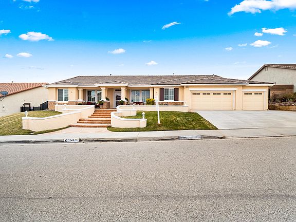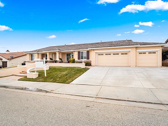 Welcome Home! This Lovely Single Story home is tucked away in the foothills of West Palmdale close to schools and shopping centers. Soon as you walk-in the front door you will see the open floor plan with formal dining room, living room and enormous great room with a built in entertainment center. This home offers 5 over-sized bedrooms plus a bonus room and 3 bathrooms. Kitchen has a center island with lots of counter space and cabinets with a walk in pantry. This home features the master bedroom on one side of the home with master bathroom with separate tub and shower with dual sinks and large walk-in closet. Other bedrooms are on the other side with spacious laundry room with backyard access. Backyard is large with an enclosed patio and a basketball court. Not to mention the views from the front porch as you enjoy your coffee. Come preview this home today.