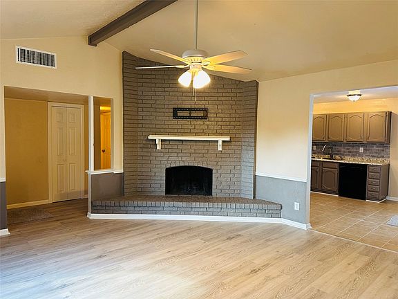 Recently Updated DOLLHOUSE! Three Bedrooms, Split Master Suite with Nicely Tiled Master Bathroom, Double Closets. Fresh Carpet, Paint, Laminate Flooring, New Kitchen Appliances (Black), Ceiling Fans throughout, Large Living with Brick Fireplace, Gourmet Kitchen boasts New Cabinetry, Tile Backsplash, French Doors lead from Kitchen to Large Side Patio perfect for Grilling Outside!