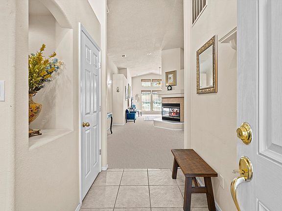 Looking for a great neighborhood? Great Location? Single Story with 3 bedrooms + flex room? This one is it! This beauty is sparkling clean & ready for new owners! The backyard is a beautiful oasis to spend your summer entertaining with 2 large patios. Kitchen offers tons of counter space and is open to the great room with vaulted ceilings. Cozy 2 way fireplace highlights the space! Spacious Primary Bedroom with bay windows, large walk in closet & walk in shower. Finished & insulated garage & tile roof! Solar panels make your refrigerated air bills super low! Located close to Paseo, shopping & parks!
