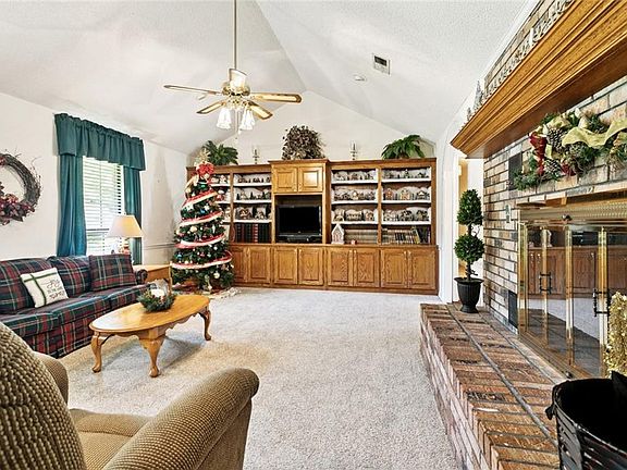 Overlooking cleared acreageHuge covered patioInside laundry roomSpacious kitchenGas cooktopLovely fireplaceBuilt-in bookcases