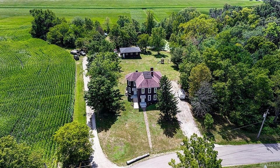 Nice private setting with endless country views. Spacious 4 bedroom farmhouse full of character and charm on just over 3 acres. 1st floor has living room with decorative wood burning fireplace, large eat in kitchen, formal dining room (being used as office), master bedroom and updated en suite bath, laundry and 2nd updated full bath. Upstairs you will find 3 additional bedrooms. 2 pellet stoves provide additional heat. New deck overlooks private back yard with pond. . Large work garage will house 4 vehicles tandem. Near I-70 making this the perfect location for an easy commute. Schedule your private showing today!