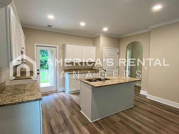 Great floor plan with arched doorways, hardwood floors and cathedral ceiling. Open kitchen with beautiful granite counter tops, recessed lights, an island (with cabinets on both sides), and a pantry for additional storage space.