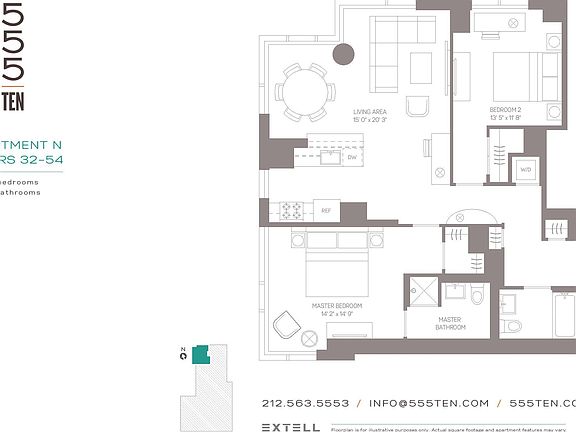 With sweeping views of the city from sunrise to sunset 555TEN towers over the new West Side. 56 floors of loft, 1, 2, and 3 bedroom luxury midtown rentals raise New York living to a new level.