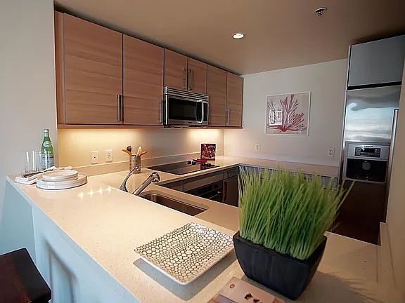 Luxury and comfortable one bedroom / one bathroom apartment in the heart of the City, with amazing views of downtown. Full service building located in the heart of SOMA. Easy access to public transit (Muni/BART) and 280/80/101 freeways. Caltrain, Whole Foods, restaurants and Safeway are less than 2 blocks away. UNIT's features: - 7th Floor with gorgeous views of downtown SF - Hardwood flooring - Cesarstone counter tops - Stainless steel Bosch appliances including: Sub Zero fridge, dishwasher, microwave, electric range - In-unit full size Washer/Drier - LED lighting - Dimmable overhead LED lighting in bedroom and living room - Private balcony - Unit close to elevator - Dedicated full size parking available, close to elevator, 1st floor (not included in rent) MOVE IN COST: First month rent: $3350 Refundable deposit: $4000 Moving deposit from the Management Co: $500 BUILDING's amenities feature: - Atrium garden - Fully equipped fitness center - 24 hour security / concierge / doorman (24/7 handling of packages) - 3 elevator banks - Business Center / Computer room - Meeting room - Private theater - Club lounge - Building and unit pre-wired for high speed Internet (cat5/cat6 wiring) - Building and unit pre-wired for cable service (Comcast or DirectTV) NOTE: Pictures showed from previous staging !!