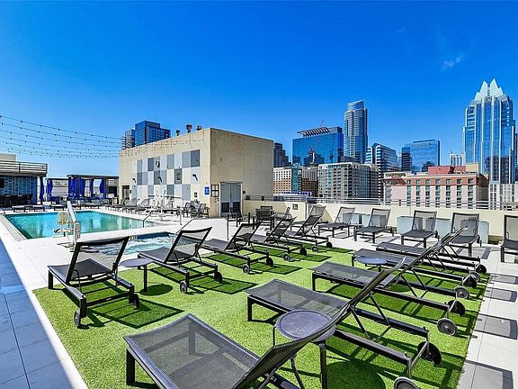 Upscale Large Downtown 1BR With a View - Game Changer, Optional Fully Furnished Live in the exclusive 5 Fifty Five condominiums attached to the Hilton Austin Hotel just 1 block from Austin's world famous Entertainment District. This fully renovated condominium has over $100K of upgrades with floor to ceiling east facing windows and oversize balcony showing unobstructed views for 30+ miles. The condo has been featured in magazines/TV. Brand new top of line 9.5" plank white oak hardwood floors were just installed throughout. Gas range, stainless steel appliances and like new Electrolux washer/dryer with pedestals in utility room come with unit. Custom ceiling features and wood wall units include Martin Logan surround speakers (same as in Playboy Mansion), TV, thousands of dollars worth of Philips Hue custom lighting, Nest thermostat and Nest door lock being installed now. The kitchen and bathroom have upgraded cabinets and granite countertops. The primary oversize closet, big enough to double as a small bedroom, has customizable Elfa shelving. The 555 offers access to room service, gym with large rooftop salt water pool, hot tub, full service spa, steam room, dry sauna, rain showers, locker room, and full service pool bar. House account offers seamless discount access to Hilton restaurants, bars, Starbucks, spa services, etc. Controlled premier reserved parking is electric charging ready and allows fast in and out access to the street, just 1 minute drive to i35. 24/7 hour concierge service, package delivery, espresso coffee station, and numerous other luxuries are all included. Building has access to Google Fiber, AT&T Fiber, and Spectrum for internet. Optional additions: * Fully Furnished * All Utilities Paid * Garage Parking * F45 Gym Class Membership