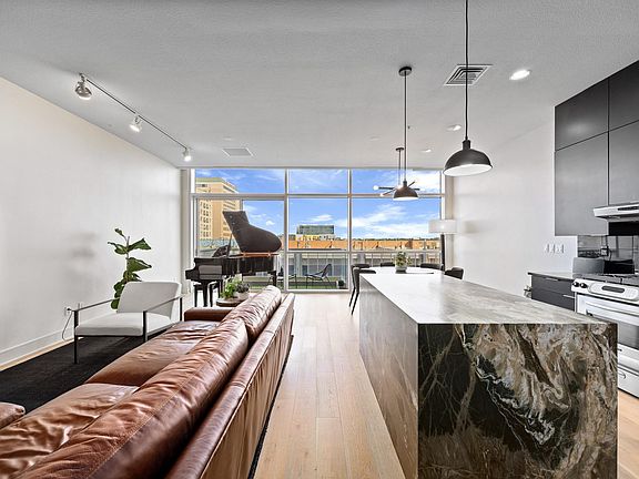 Private balconyOpen floor planRecessed lightingNew bosch stainless refrigeratorMassive walk-in closetHigh-end stainless gas cooktopStatement quartzite island
