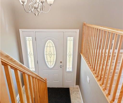 Welcoming front entranceSpacious foyerBeautiful light oak cabinetryWhite appliancesConvenient side door accessThree good-sized bedroomsFully finished lower level