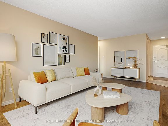 Welcome to this inviting two-bedroom, 1.5 bathroom condo offering comfort, functionality, and value in a well managed community. The layout is both bright and practical, featuring a generous living room with access to a private balcony, a separate dining area, and a galley style kitchen complete with a walk-in pantry. The second bedroom, currently used as a den or office, provides flexibility for your lifestyle. The spacious primary bedroom includes a walk in closet and a convenient two piece ensuite, complemented by a full main bathroom. Recent updates enhance both comfort and style, including new engineered oak hardwood flooring (Dec 2024), stainless steel fridge and range (Apr 2024), and an upgraded electrical breaker panel (Sep 2020). The unit is equipped with an HVAC system offering efficient heating and central air conditioning. Residents enjoy excellent amenities, including an outdoor pool, indoor sauna, gym, party room, library, modern laundry facilities, indoor garage parking, and ample visitor parking. This well cared for building offers the ideal balance of convenience, comfort, and community living. Condo fee includes all utilities. Some photos have been virtually staged