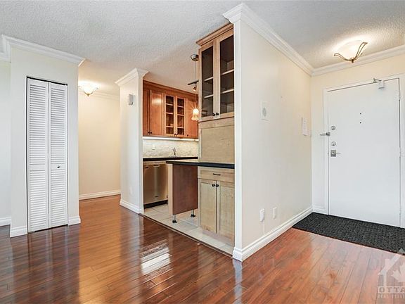 Rare opportunity to own an affordable and centrally located PENTHOUSE in popular Viscount Alexander Park. This very spacious 1 bedroom executive suite offers great views, 2 full bathrooms, and a very contemporary layout loaded with natural light. The inviting foyer boasts a large storage closet and leads to the bright & open living & dining areas. The modern kitchen features porcelain floors, custom cabinetry & backsplash, granite counters and high end appliances. The unit also features a custom built-in Murphy bed for your guests. The spacious bedroom has a walk-in closet and en-suite. Enjoy stunning views of downtown Ottawa & Gatineau Hills from the large and private balcony! Underground parking has an attached storage locker. Amenities including a gym, sauna, party room & outdoor pool. All-inclusive condo fees! Proximity to Aviation Parkway, Montfort Hospital, CMHC, NRC, trails, shopping, transit and more! Experience urban living at its finest! 24 hours irrevocable on offers. 2022-04-23
