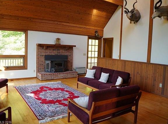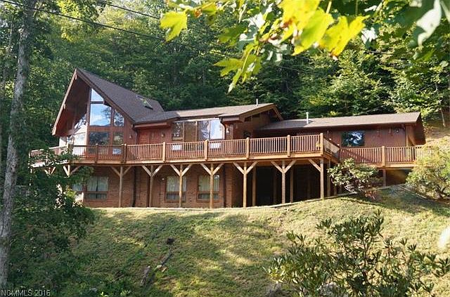 LOVELY LINDAL CEDAR HOME ON 15.9 ACRE ESTATE WITH PRIVATE WATERFALL ALONG A BEAUTIFUL MEANDERING CREEK, TUCKED BENEATH MAJESTIC ROAN MOUNTAIN. As you enter the property on a paved drive, there is a lovely open meadow, fenced area for basketball or tennis, and a small detached garage. You cross the bridge to the main house, rustic log cabin, hobby shop, and large metal storage building. The main house has 4 bdrm, 2 1/2 baths.