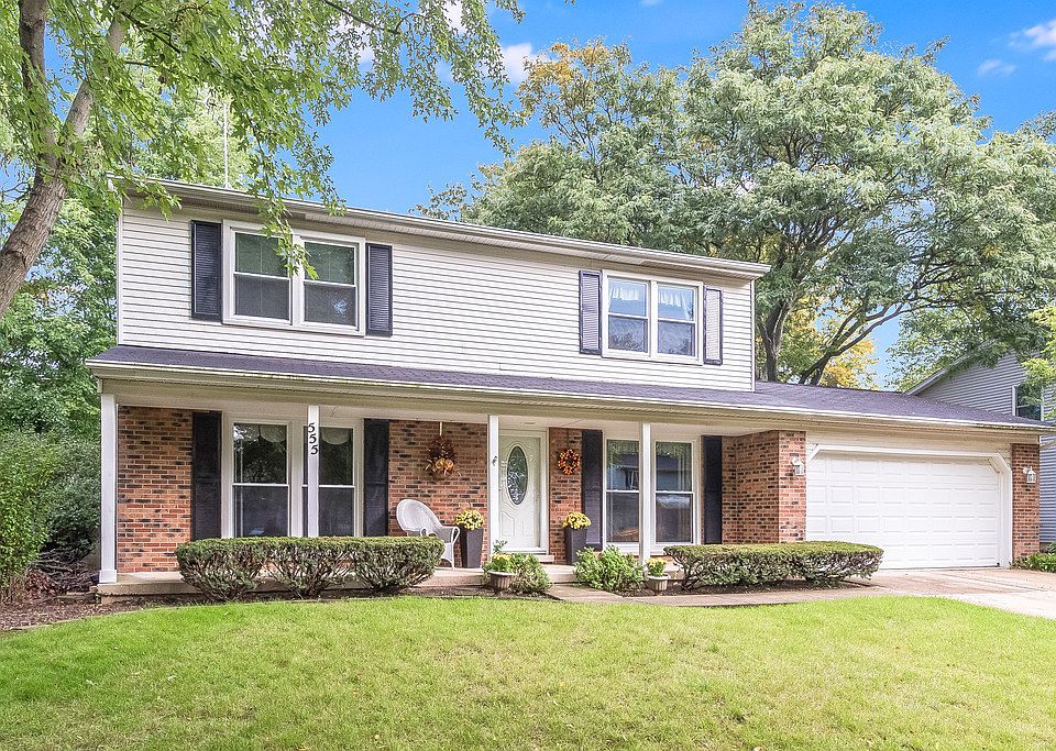 Hard to find a nice 4 bedroom in this price range in Naperville Central boundaries! Close to Scott Elementary and Madison Jr. High, too. Quality constructed KFK colonial with gorgeous fenced yard (2015) featuring detached three season room (2015), and paver patio (2011) with pergola plus storage shed. Great floor plan with large closets. Center entry with full front porch with brick elevation. Easy care laminate floors, plus porcelain tile in foyer, powder room and kitchen (2016). Cozy family room with brick fireplace and gas logs. Furnace 2020, plus CAC 2001, and roof 2011. Garage door 2016, and gutter guards 2017. Completely remodeled kitchen with large entertaining and prep island featuring granite counters and white cabinetry 2016. Low maintenance aluminum siding and whole house fan. Partial finished basement recreation room plus large storage room. Radon mitigation system already in place, too. Please exclude the primary bedroom window treatments and brackets, primary bedroom ceiling fan, and the patio fan. The pool table in basement does remain with the house for all your entertaining needs. This one will go quickly!