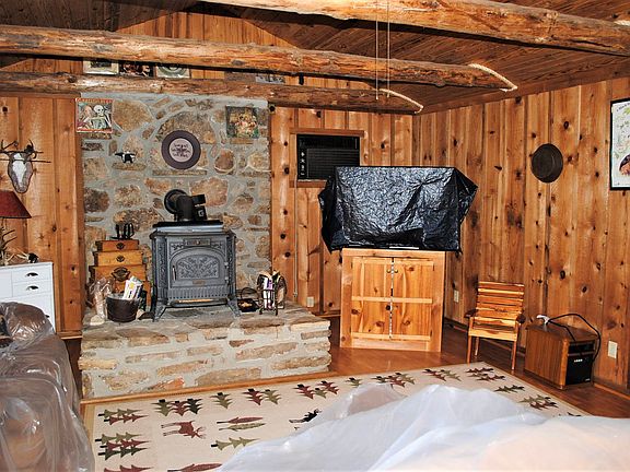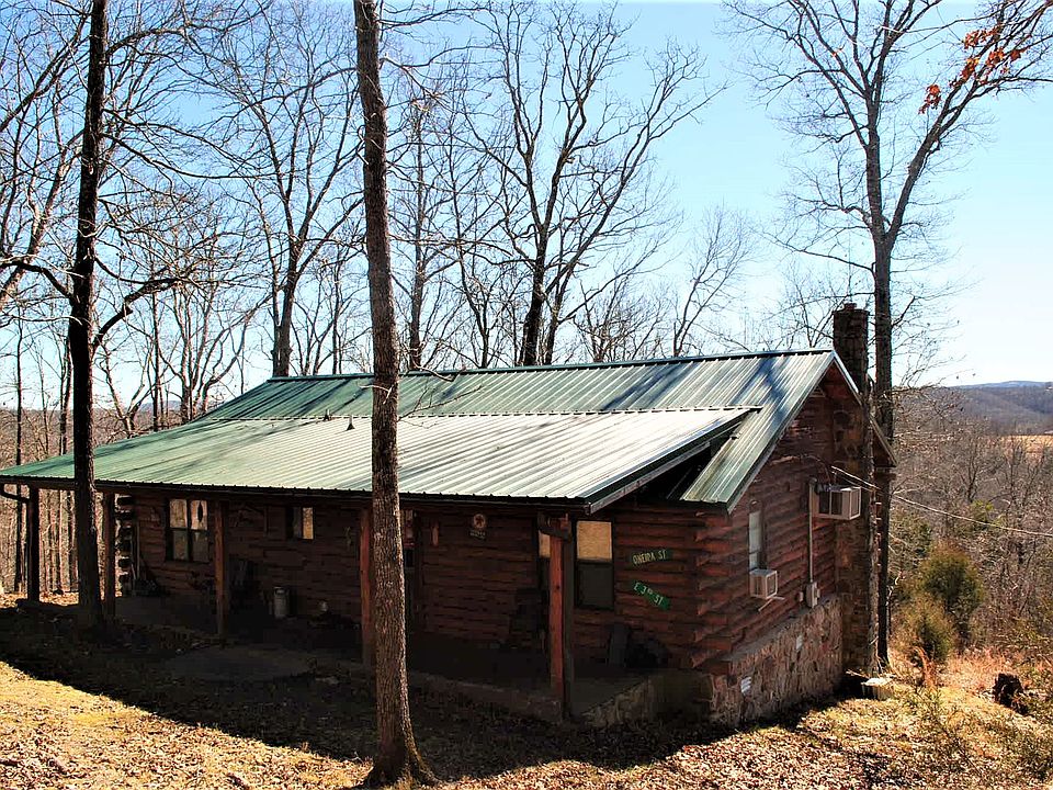 If you're looking for privacy and seclusion then look no further. This log cabin sits on 100+/- acres at the end of a ridge yet it's not far from the towns of Fifty Six and Mountain View. It has approximately 1160 sq/ft with 2 BRs/1 BA. The living area is anchored by a wood burning stove and rock hearth. Log beams across the vaulted ceiling add to the rustic charm. The kitchen has an electric stove, refrigerator, dishwasher and a bar for added workspace or seating. The bedrooms are spacious and very comfortable. The cabin is cooled with window units and heated by wood burning stove and propane wall unit. Outside you'll find front and back porches that span the width of the cabin making great places to relax.The 100+/- acres are all wooded with a mix of White Oak, Red Oak, Hickory a few pine and cedar. Many deer, turkey and bear call this place home. The land joins the National Forest to the north. For the outdoor enthusiast the property is a short distance from excellent biking, hiking, horseback riding, camping, canoeing, kayaking, fishing and hunting. An aerial map is included in the photo gallery. This isn't a survey so boundary lines may not be exact.