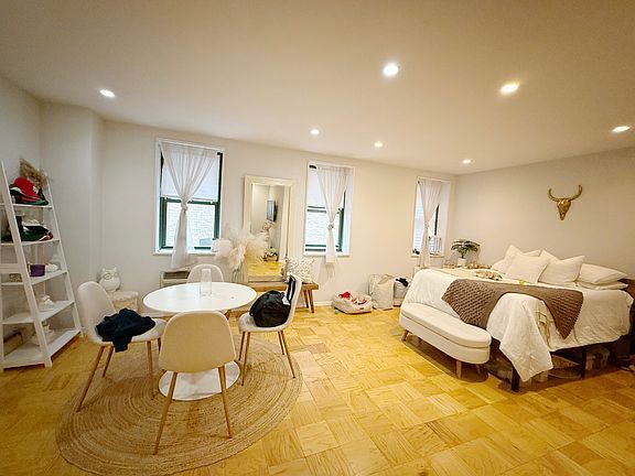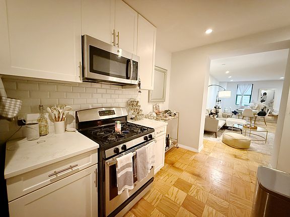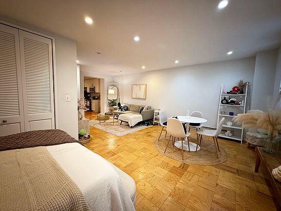 Welcome to 24 Doorman, a pet-friendly building featuring an elevator, laundry room, and the convenience of gas, heat, and hot water included. On square block of landmark buildings offers a range of amenities, including an onsite management office, three superintendents, and security coverage from 10 PM to 6 AM. Additionally, there are three internet providers available for your convenience. Take the elevator three flights up to this fabulous alcove studio, which offers the spaciousness of a one-bedroom apartment. This generously sized, renovated unit boasts a gorgeous eat-in kitchen with double-sided white wood shaker-style cabinetry, stone countertops, and stainless steel appliances, including a dishwasher and microwave hood. The porcelain-tiled backsplash adds a stylish touch, while plenty of counter and storage space makes it perfect for those who enjoy cooking. The floor plan, with two air conditioners, allows for a separation of the living and bedroom areas, so your queen-sized bed (and more) will fit comfortably. Walls of customized floor-to-ceiling closets provide ample storage space for all your belongings. The pristine full bathroom features marble flooring and classic white subway-tiled walls. Recessed lighting and polished wood flooring are throughout, completing this exceptional living space. This is unit occupied and available for 3/1 move in or possibly sooner. Please email to call to inquire.