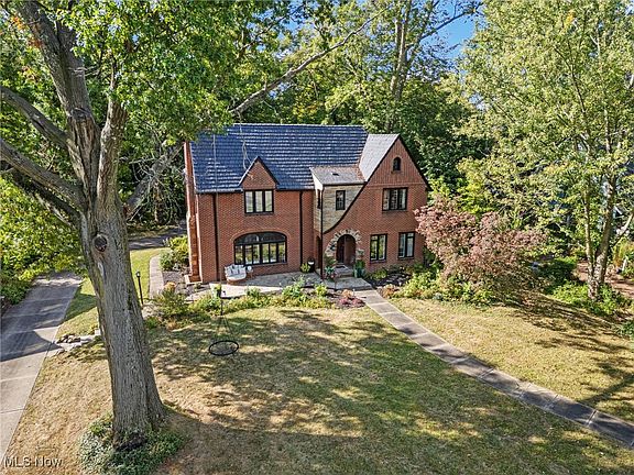 Discover the perfect blend of historic charm, modern updates, and unmatched versatility in this stunning all-brick Tudor, set on 1.12 acres of private land with secluded views of the Alliance Country Club golf course. Built in 1929, this architectural masterpiece offers rare character and space. The main residence features 4 bedrooms and 2.5 baths, showcasing exquisite craftsmanship throughout—from rich original woodwork to arched Palladian windows and decorative stone accents. A striking new steep-pitched roof (2023–2024) with a 75-year synthetic slate warranty crowns the home—part of a $228K roof and gutter investment. Inside, a grand foyer leads to a spacious living room with a full-wall wood-burning fireplace. French doors open to a sun-drenched library, perfect for reading or quiet reflection. The chef’s kitchen boasts abundant counter space, a warm wooden ceiling, crown molding, and an expansive eat-in area that flows into the formal dining room with charming built-ins. Upstairs, hardwood floors continue through the luxurious primary suite with its own fireplace, dual closets, and private bath, along with three additional bedrooms and a beautifully renovated hall bath. The third floor is a partially finished attic with high ceilings and lots of space, offering potential for even more living space. Adding incredible value to the property is a separate 2-bedroom guest house with its own kitchen, bath, laundry, and living area. Whether used as a private in-law suite, a space for extended family, or as a rental property for extra income, this cabin expands the possibilities well beyond the main home. Outside, enjoy the oversized 19’ x 23’ deck for entertaining or simply soaking in the peaceful backyard views. The property also includes a full basement with generous storage, a 2-car attached garage, and a covered 2-car carport. All this in a prime location, just minutes from Silver Park, Mount Union, and local shops.