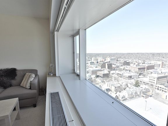North side 21st floor Small One Bedroom unit with magnificent view of downtown Ann Arbor through full width panoramic window in living and bedroom. Prime downtown location jsut one block from UM Campus in the quiet State Street neighborhood. Quiet secure building has 24 hour lobby security, soundproof walls, on site laundry, storage, maintenance staff. This is a perfect home for student, downtown based professional, senior, investor, weekender, or anyone looking for a reasonably priced downtown residence. Parking and on site rental management available. Note: rented through 7/15/25