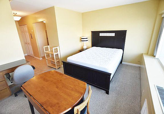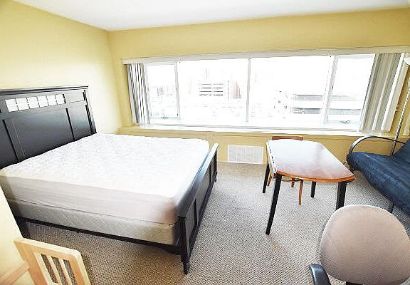 Furnished studio with great view through huge windows. Great location just one block from UM Campus in the quiet State Street neighborhood. Quiet secure building has24 hour lobby security, soundproof walls, on site laundry, storage, maintenance staff, management office.