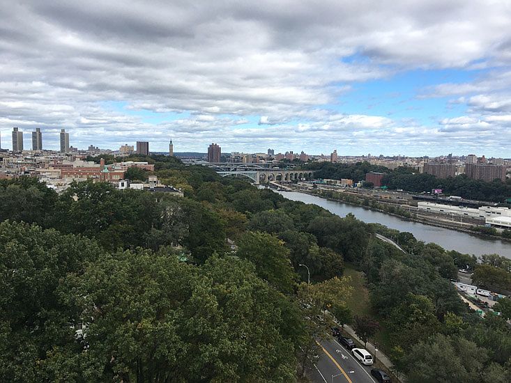 Available for immediately, this 13th floor corner apartment has a large bedroom and medium-sized living room. The view overlooks the Morris-Jumel Mansion. Has clear beautiful unobstructed views looking northwest, north and northeast! This 15-story building has Tiffany glass ceiling in a marbled lobby and 2 elevators. Small separate refreshed kitchen. Sunny with views from every window in every room -- 9 windows! Has one very large walk-in closet and 3 regular size closets. Heat and hot water are included. Tenants pay electricity and gas usage on stove/oven; plus cable/WiFi. Large laundry room on premises with 24 hour access. Security desk guard present during the evening hours. SHARING WELCOMED. Wheelchair accessible. PETS WELCOMED upon approval. Apartments rarely become available in this Historic Landmark building affectionately known as "The Jazz Building", where Duke Ellington, Billie Holiday, Joe Louis, Sidney Poitier, Lena Horne, Count Basie and Paul Robeson were said to have rested their heads!! Very close subways, buses, shopping, park, New York Public Library and historical landmarks. *VERY LOW BROKER FEE! *