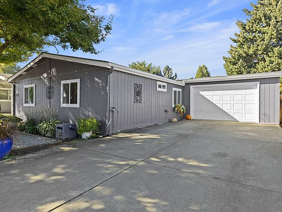 Adorable & Move-In Ready! This home has been completely remodeled. Including new windows, laminate flooring throughout. New interior and exterior paint, appliances, cabinets/counter-tops, light fixtures, toilet. Generous patio with a private and intimate backyard for outdoor entertaining needs with plenty of room for gardening, and a new 10X8 storage shed for your lawn/garden and holiday storage. Located in ''The Meadows'' 55+ is close to shopping and easy access to I-5. Full club house offers a gym, pool, community activities, full kitchen, pool tables, rental for private parties available. RV storage on-site for a small fee.