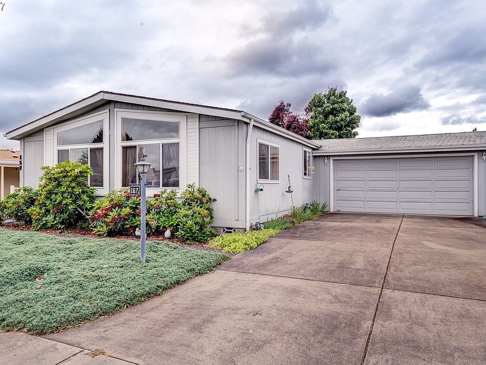 Fantastic home in The Meadows 55+ park where you own the land! This 1512 sq ft home has 3 bedrooms and 2 baths w/ 2 car garage. As you walk in you'll enter the spacious living room with vaulted ceilings, which is open to the large kitchen and dining room. Windows throughout the house create a nice natural light. This Kitchen has lots of storage, peninsula, skylights, a flat top oven, new fridge, and lots of room.
