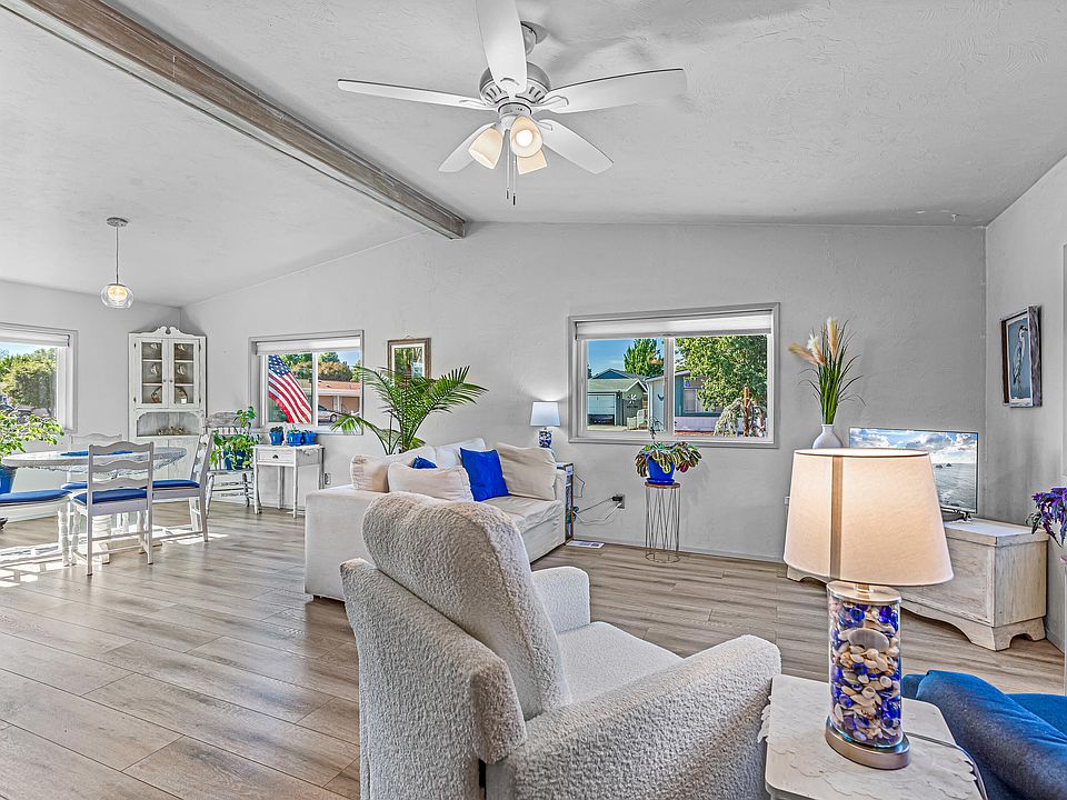 Fantastic Opportunity to own a beautiful home in the extremely desirable ''Meadows'' in Central Point. This home offers the very best for a 55+ park - You own the land, so the monthly dues are very low + You have use of all the great amenities. 2 nice sized bedrooms, 2 baths , laundry room & lovely living room with cathedral ceilings. Entire house has been lovingly updated including freshly painted exterior & interior, newly installed wood laminate floors, all new energy efficient double pane windows, updated lighting fixtures, new front covered porch/deck, fruit trees, storage shed and fencing.
