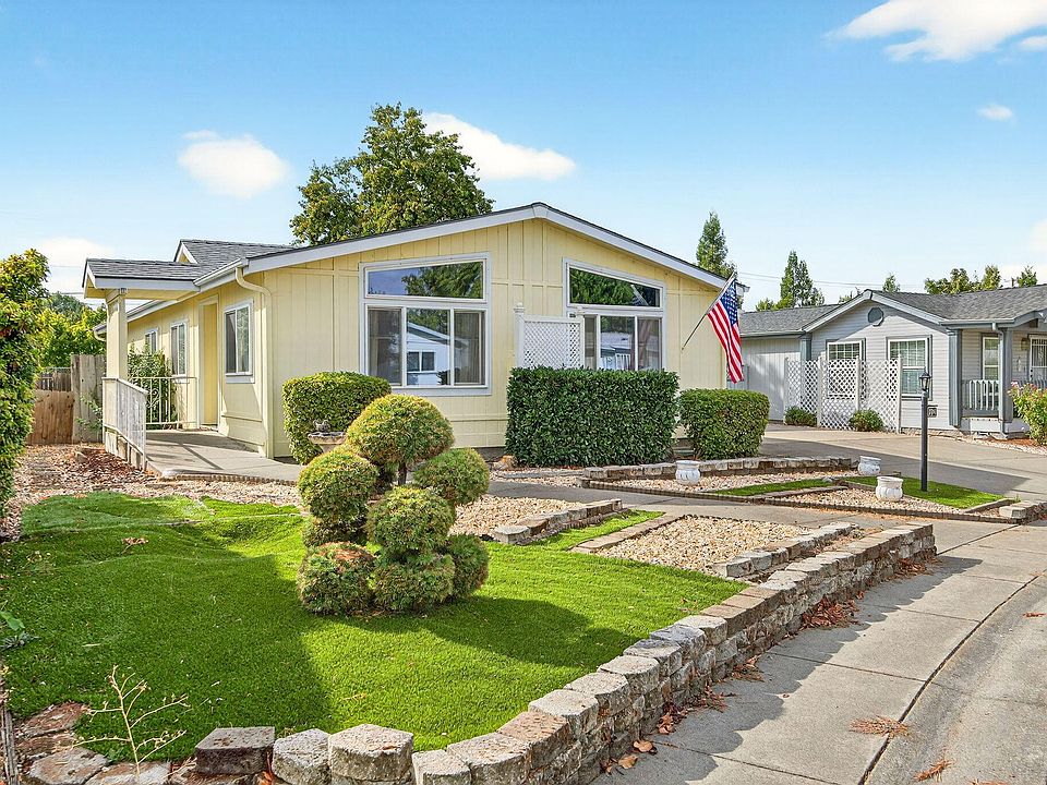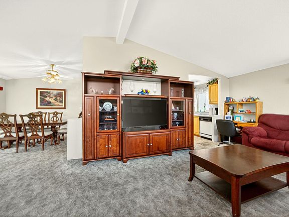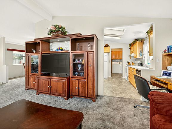 In the coveted Meadows 55+ community, this 1,512 sq. ft. home offers both comfort and convenience. Featuring 2 bedrooms, 2 bathrooms, a spacious office, and a dining room, the layout is ideal for everyday living. Vaulted ceilings, skylights, and ceiling fans enhance the airy atmosphere, while updates like exterior paint (2022), water heater (2020), and new gutter leaf covers provide peace of mind. A ramp leads to the front entry, and the covered back patio with tool storage is perfect for relaxing outdoors. The 2-car garage adds plenty of parking and storage space, and all appliances are included for easy move-in. Located on owned land with access to a clubhouse and pool, this well-maintained property offers an active and welcoming community lifestyle.