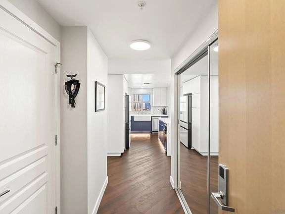 Enjoy breathtaking bay and city views from this beautifully remodeled 13th-floor residence in the heart of the Marina District. This spacious 2-bedroom, 2-bath home offers two patios and two parking spaces, each with its own EV charger. Renovated in 2023 with over $200,000 in upgrades, including new cabinetry that added extra storage throughout the unit, Continuous flooring throughout the unit, lighting, plumbing fixtures, and appliances. Highlights include a modern kitchen with luxury tile finishes, large pantry adjacent to the kitchen, quartz countertops, Alexa-enabled refrigerator and smart oven, custom walk-in closet, fireplace, blackout shades, and Wi-Fi and Bluetooth-enabled color-changing ceiling lights that can be controlled via SmartLife or SmartThings app Ideally located in the heart of the Marina District, Horizons offers easy access to Petco Park, the Gaslamp Quarter, San Diego Bay, the Marina, shopping, dining, and entertainment. Community amenities include a pool, spa, BBQ area, fitness center, conference room, club room, and 16 guest parking spaces. This residence includes two separate parking spots and a storage unit. Horizons has recently been refreshed with beautifully remodeled lobbies, upgraded hallways, and new unit doors with convenient keypad access.