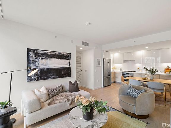 This bright, west-facing corner home in the heart of Hayes Valley features floor-to-ceiling windows, a modern open layout, and refined finishes throughout. Overlooking the landscaped courtyard, the living space offers a quiet retreat from the city. The sleek kitchen is outfitted with Bosch appliances, quartz counters, and generous cabinet storage. A spacious bedroom, ample closets, wide-plank flooring, and in-unit laundry complete the home. Building amenities include an expansive roof deck with sweeping city views, a secure lobby, package room, bike storage, and a convenient ground-floor grocery market. Perfectly situated in the center of Hayes Valley, you're steps from boutiques, cafes, restaurants, fitness studios, and Trader Joe's every city convenience right at your doorstep.