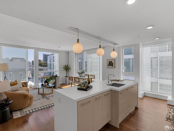 Experience the absolute best of Hayes Valley in this stunning 2BR/2BA corner unit with iconic views of City Hall! Boasting floor-to-ceiling windows throughout the home, this sunny residence offers a spacious, open floor plan that seamlessly connects the kitchen, dining and living areas. The gourmet kitchen is perfect for entertaining and is equipped with premium Bosch appliances, spacious quartz island, and customized cabinetry. The generously sized bedrooms feature ample storage and customized closets, while the luxurious bathrooms offer deep soaking tubs. Additional features include in-unit laundry and 1 garage parking space. Building amenities include rooftop deck with BBQ, front desk concierge, dog run, lounge, conference rooms, bike room, and direct access to Trader Joe's downstairs within the building. Living in Hayes Valley means you have access to a rich cultural scene, with Hayes Valley Corridor showcasing renowned restaurants like Chez Maman and Rich Table. Entertainment scene is lively with SF Jazz, SF Symphony, and SF Ballet/Opera just steps away. Public parks like Patricia's Green Park and Alamo Square Park provide a peaceful getaway from the bustling city. With a Walk Score of 99, everything you need is within reach, including MUNI, BART, and 101/280HWY!