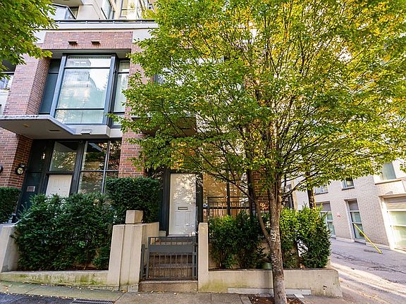 Two-level corner end-unit townhome in the heart of Downtown Vancouver, adjacent to Yaletown. Features include 11-ft ceilings, large windows, and nearly 100 sq.ft. of outdoor space. Main floor offers a kitchen with an open living/dining area, powder room, and flex/storage space. Upper level includes a large den with access to a quiet above-ground patio and a bedroom that accommodates a king bed with dual closets and a cheater 4-piece ensuite. Building amenities: 24-hour concierge, rooftop patio, fitness centre, meeting room, bike storage, and secure parking. Steps to restaurants, entertainment, sports venues, shops, and the seawall.
